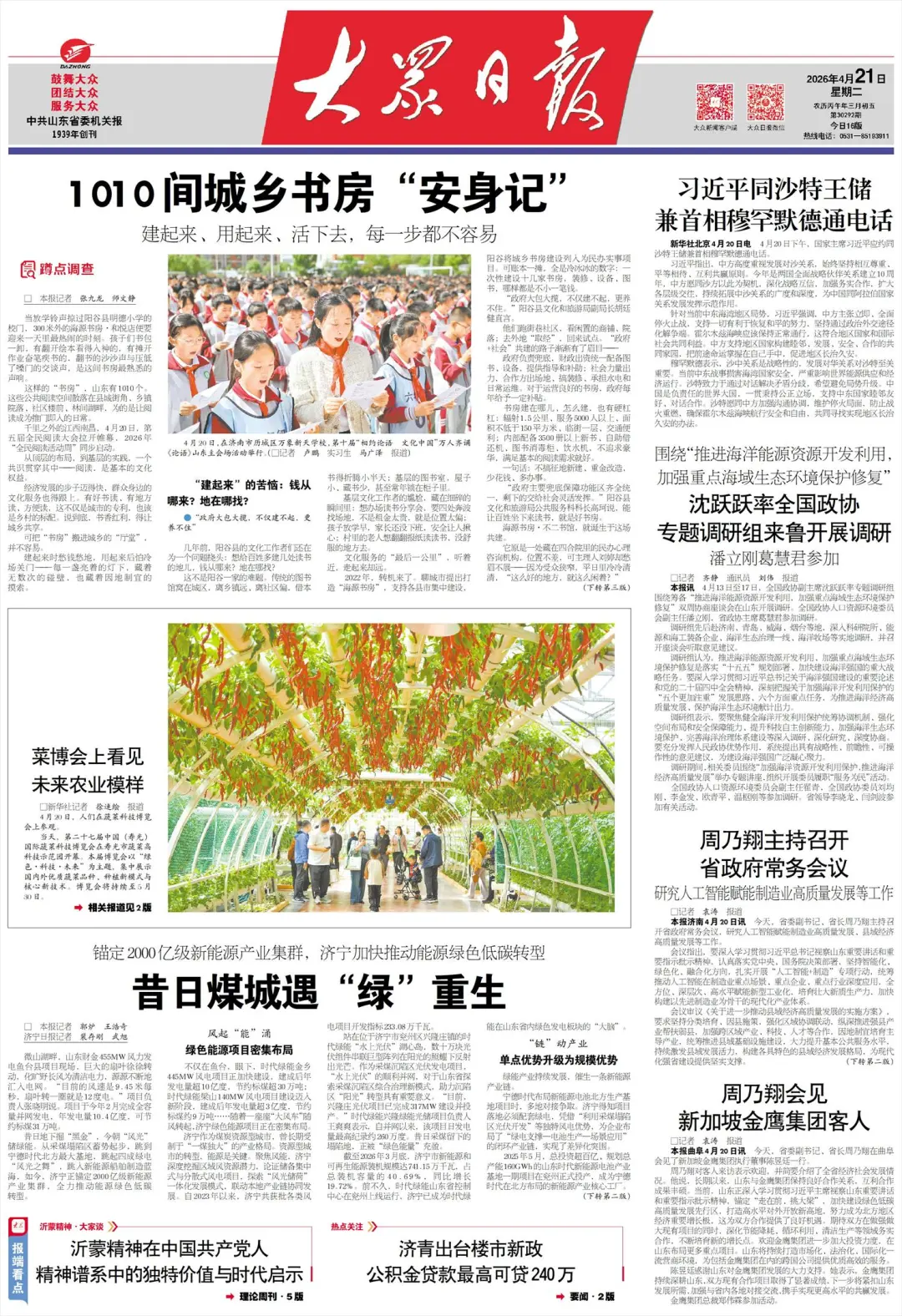 大众日报头版 | 昔日煤城遇“绿”重生