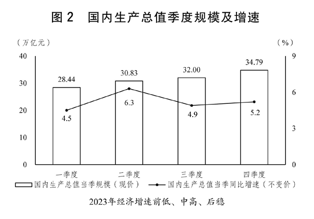 2023年是全面贯彻党的二十大精神的开局之年,是三年新冠疫情防控转段后经济恢复发展的一年。在以习近平同志为核心的党中央坚强领导下,各地区各部门坚持以习近平新时代中国特色社会主义思想为指导,全面贯彻党的二十大和二十届二中全会精神,深入开展学习贯彻习近平新时代中国特色社会主义思想主题教育,按照党中央、国务院决策部署,认真执行十四届全国人大一次会议审查批准的2023年国民经济和社会发展计划,落实全国人大财政经济委员会审查意见,顶住外部压力、克服内部困难,坚持稳中求进工作总基调,完整、准确、全面贯彻新发展理念,加快构建新发展格局,着力推动高质量发展,全面深化改革开放,加大宏观调控力度,着力扩大内需、优化结构、提振信心、防范化解风险,新冠疫情防控实现平稳转段、取得重大决定性胜利,我国经济波浪式发展、曲折式前进,总体回升向好,主要发展目标任务圆满完成,高质量发展扎实推进,全面建设社会主义现代化国家迈出坚实步伐。
